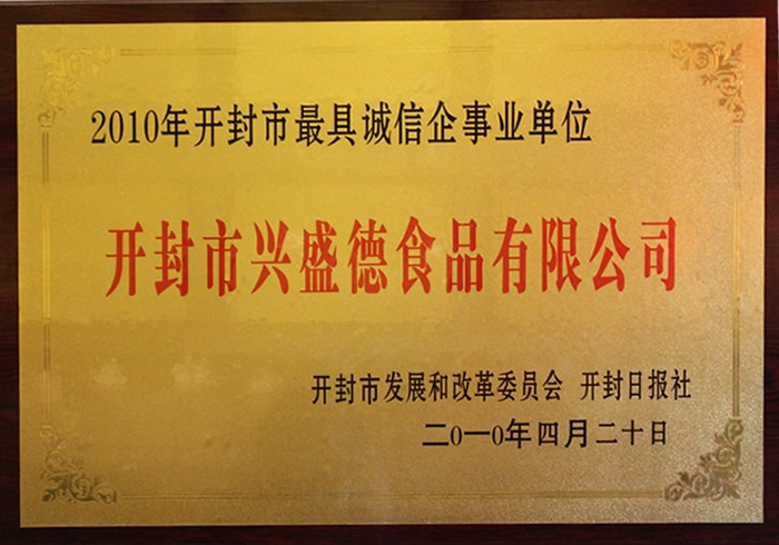 2010年開(kāi)封市最具誠信企事業(yè)單位